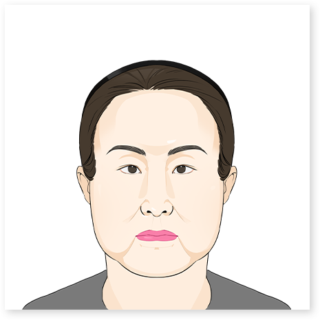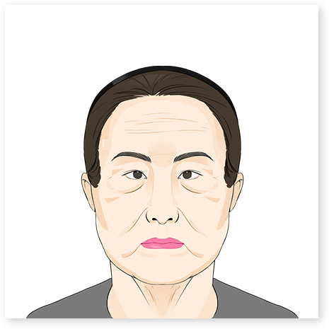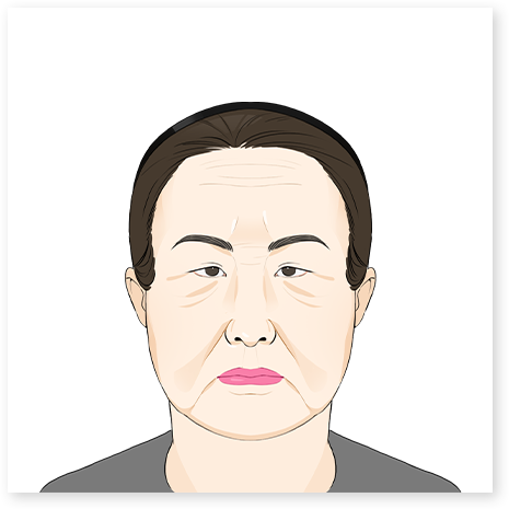 - 04. 턱선(턱살)과 입가 주위에 처짐이 보인다.